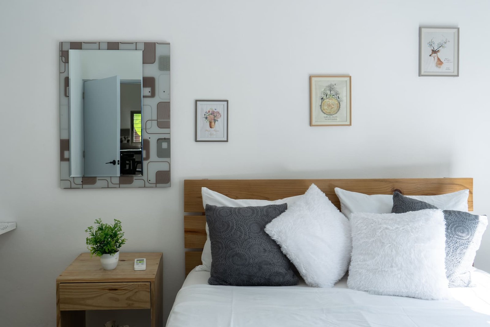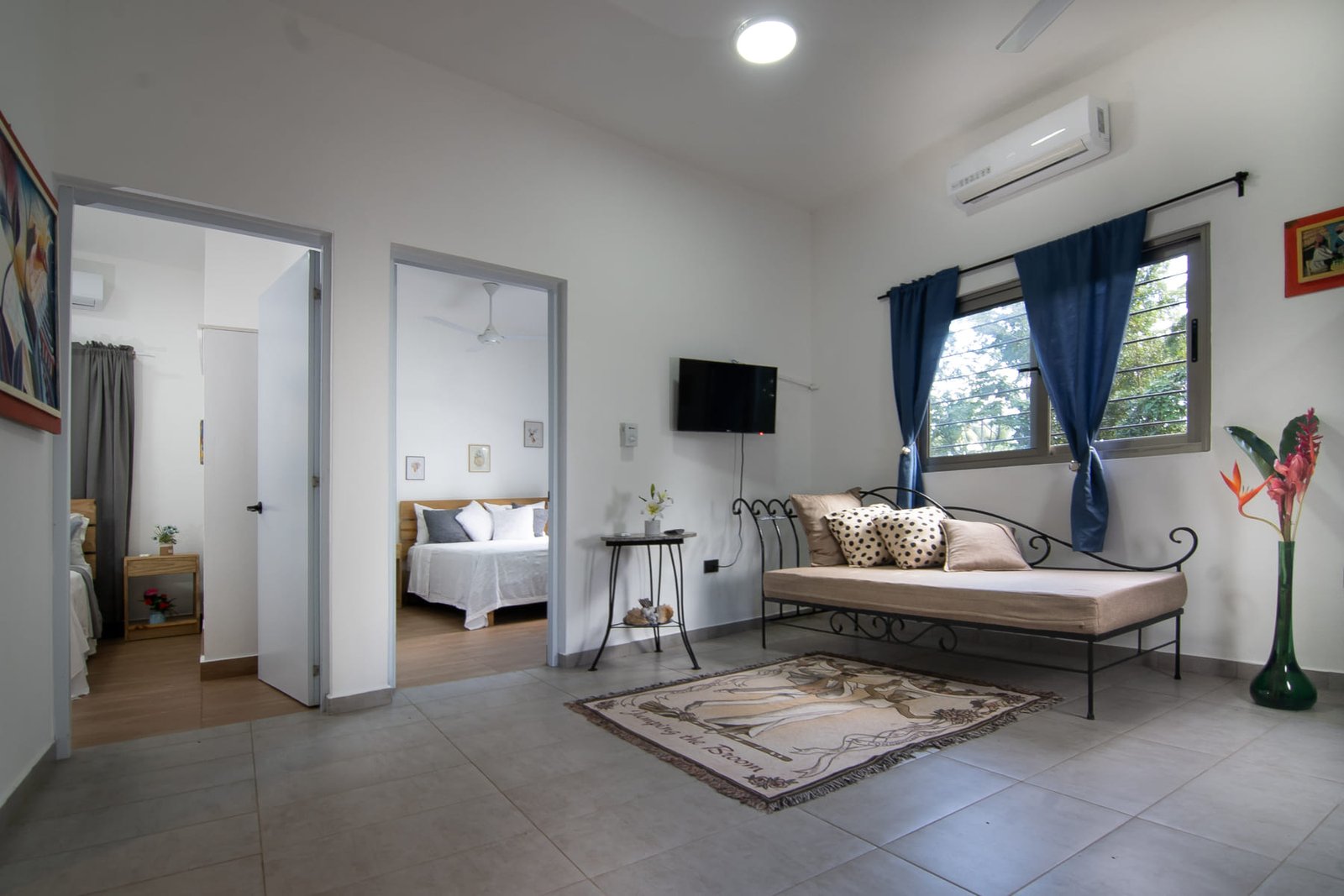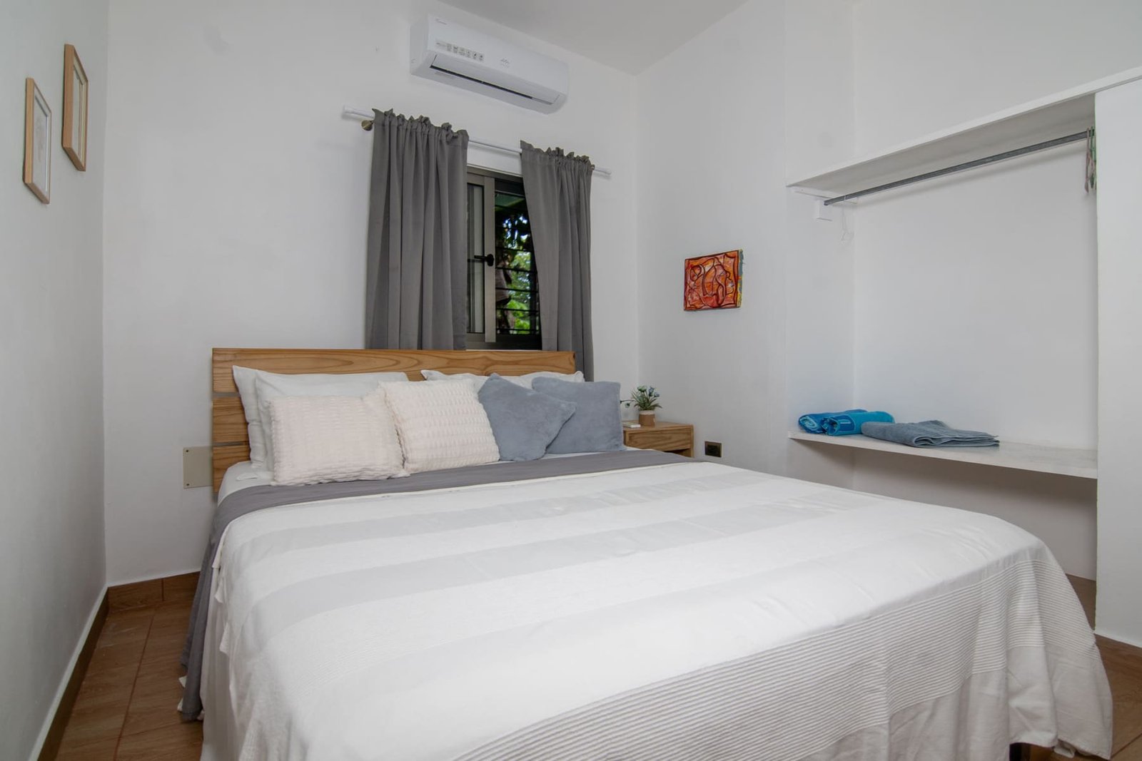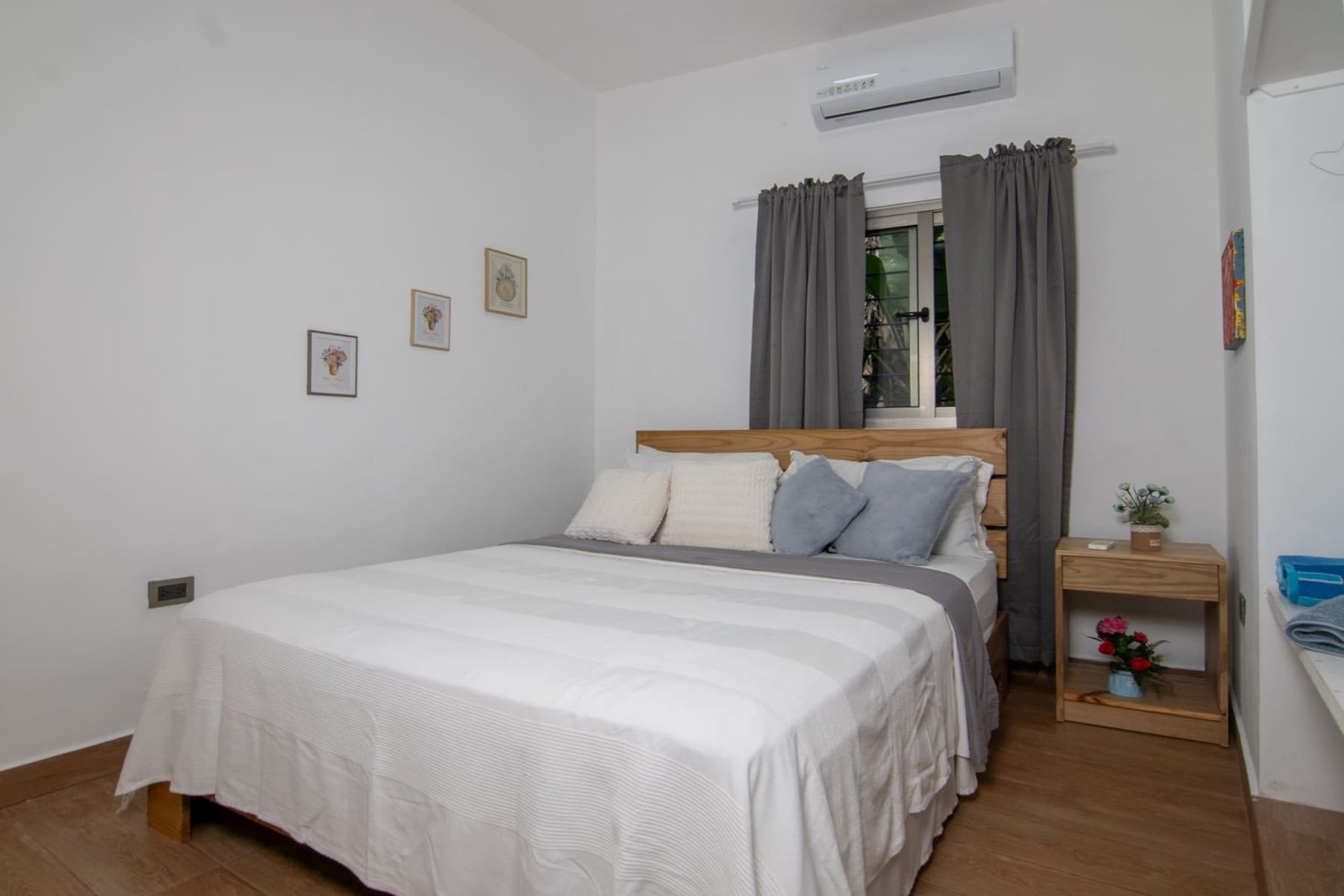 Nuestro alojamiento ha sido diseñado para brindar confort y funcionalidad en cada rincón. Cuenta con dos habitaciones, cada una equipada con camas queen size, aire acondicionado y un ambiente acogedor para su descanso. La sala de estar ofrece un espacio cómodo con televisión, ideal para relajarse después de un día de exploración. El baño completo dispone de todas las amenidades necesarias, además de acceso a lavadora. Si disfruta cocinar, la cocina equipada tiene todo lo necesario para preparar sus comidas favoritas con facilidad. Por último, el comedor, con capacidad para 4 personas.